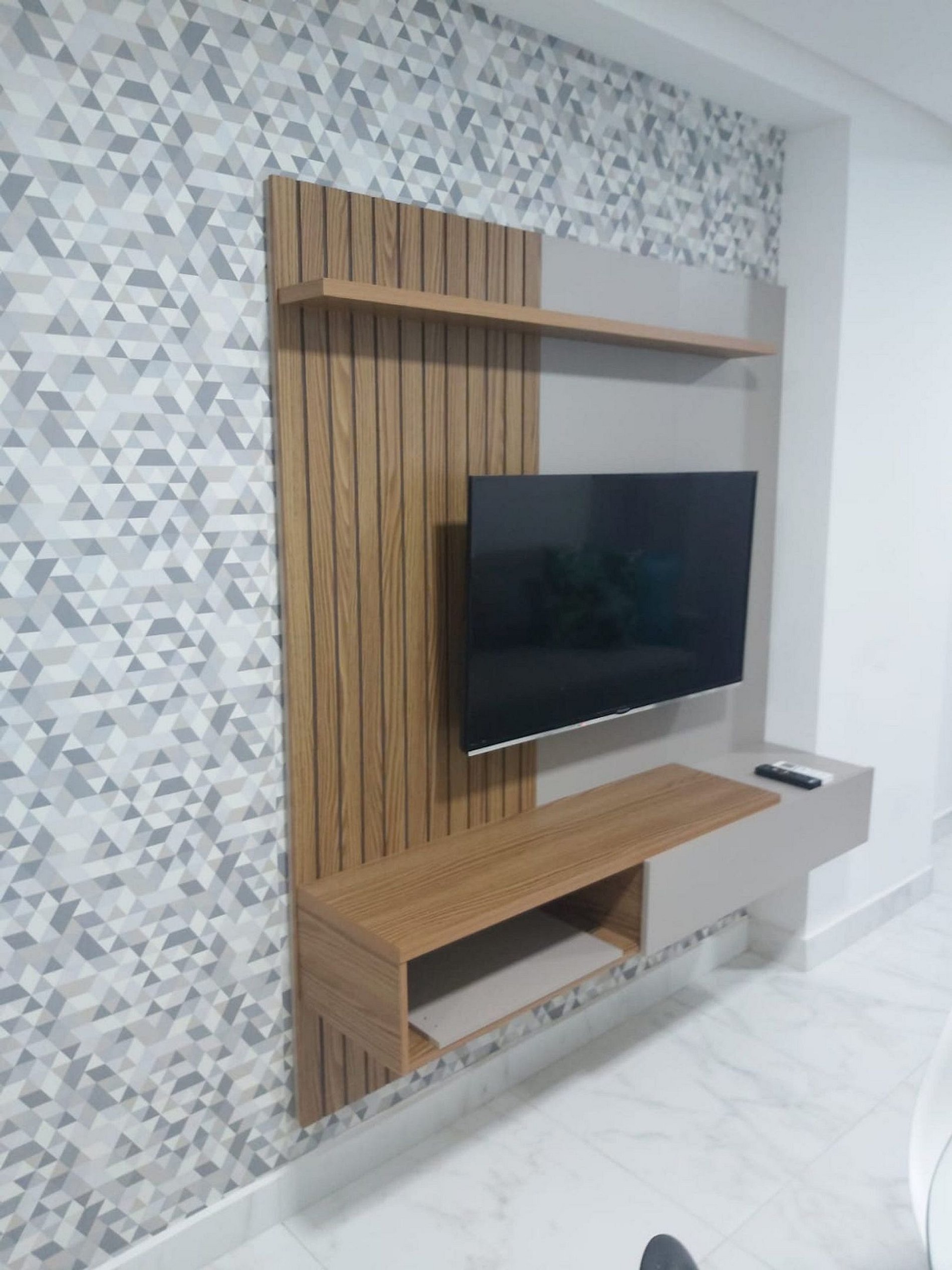- 01 sala com: ar-condicionado, sofá-cama e TV.