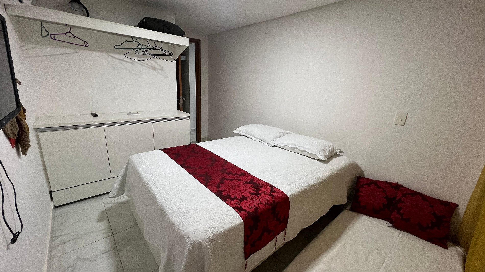 - 01 quarto com: ar-condicionado, 01 cama de casal, 01 cama de solteiro auxiliar, um armário e uma TV
