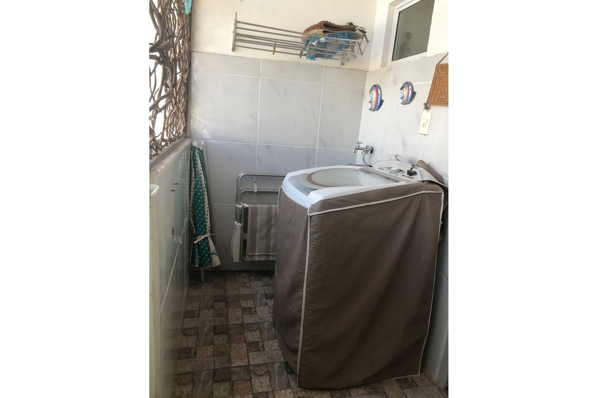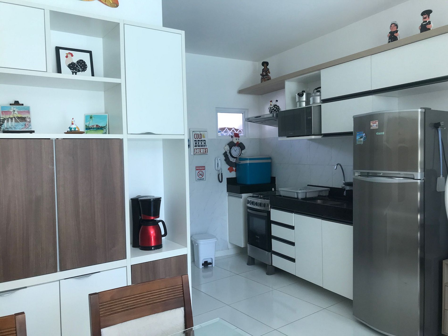 Apartamento conta com: sala de estar com TV, sofá, mesa interna com 6 lugares, ventilador e ar-condicionado; cozinha completa com eletrodomésticos (cafeteira, micro-ondas, jogo de panelas, geladeira, etc.); 2 banheiros individuais.; área de serviço com máquina de lavar roupa; churrasqueira individual. Neste apartamento oferecemos, de forma gratuita, caixa térmica, 02 cadeiras de praia e um pequeno sombreiro que podem ser levados para praia.
