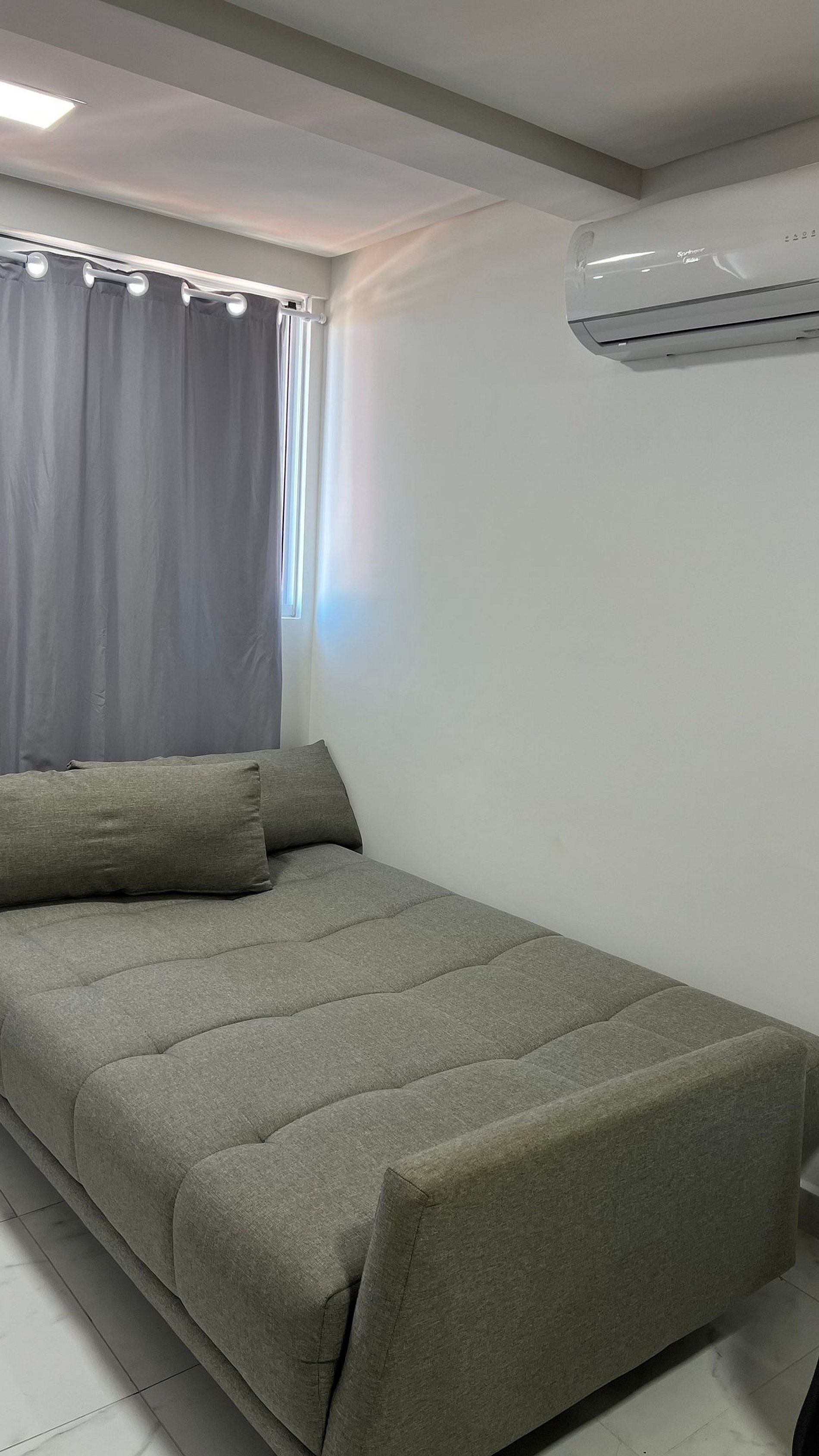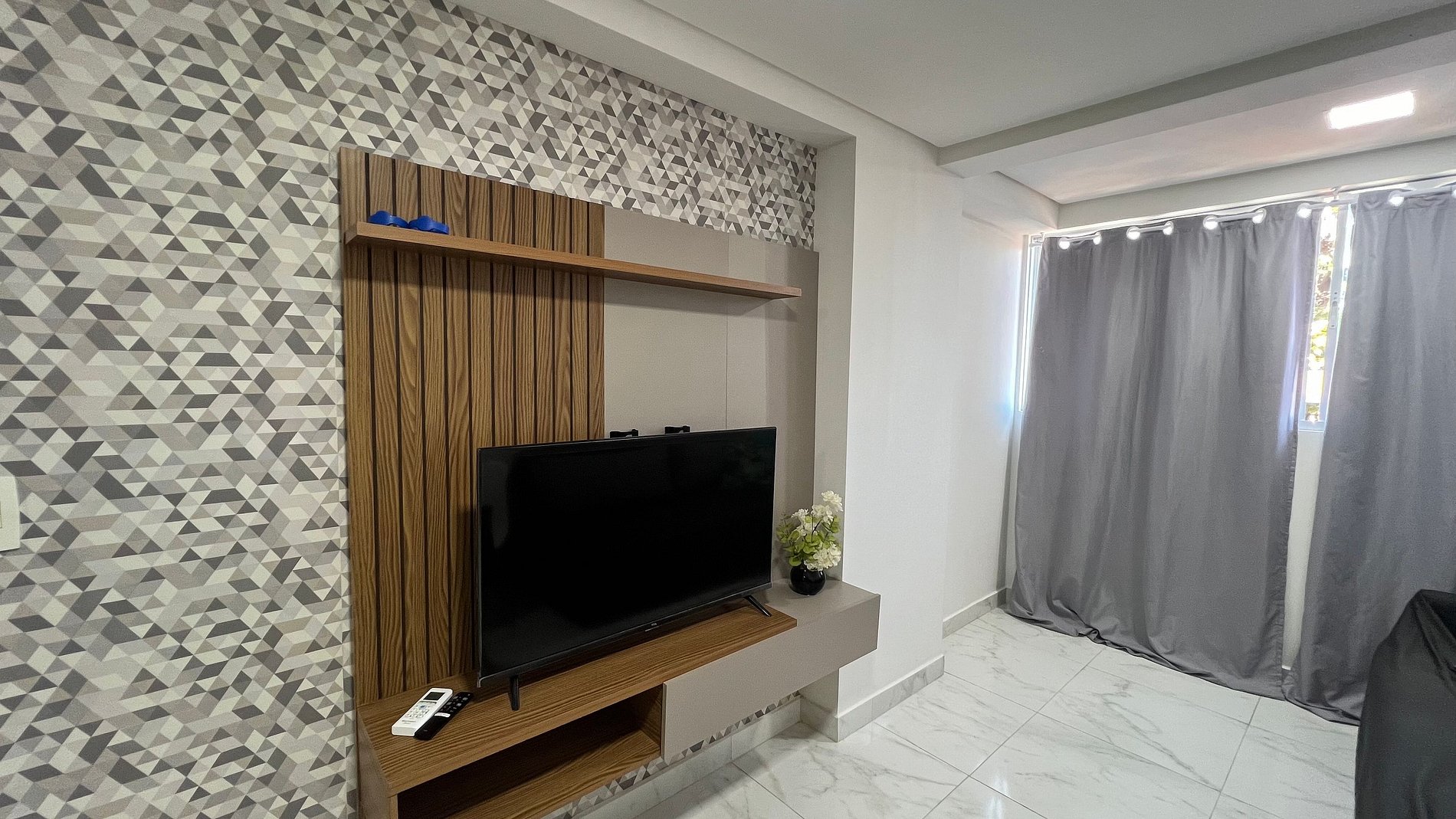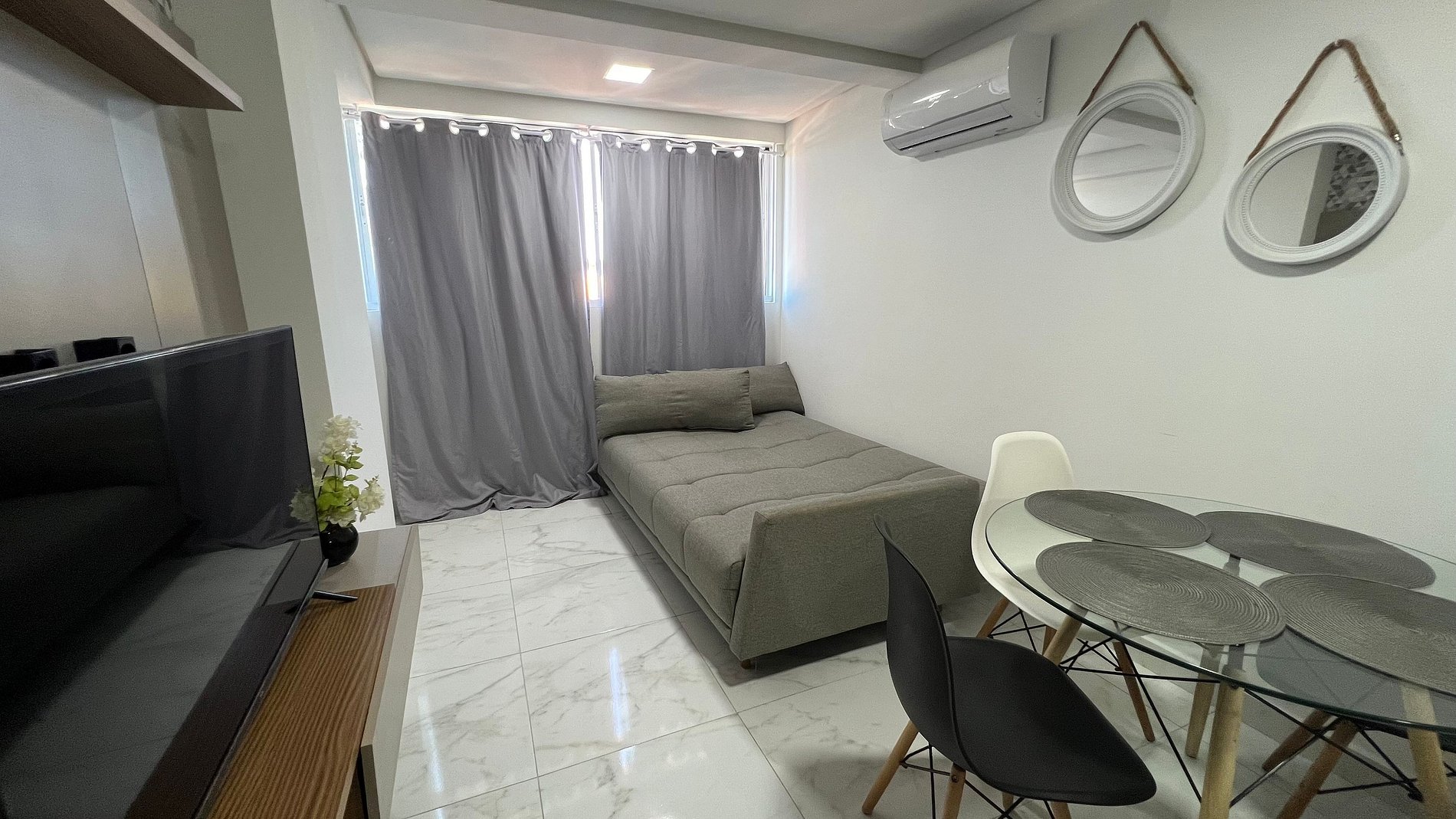 - 01 sala com: ar-condicionado, sofá-cama e TV.